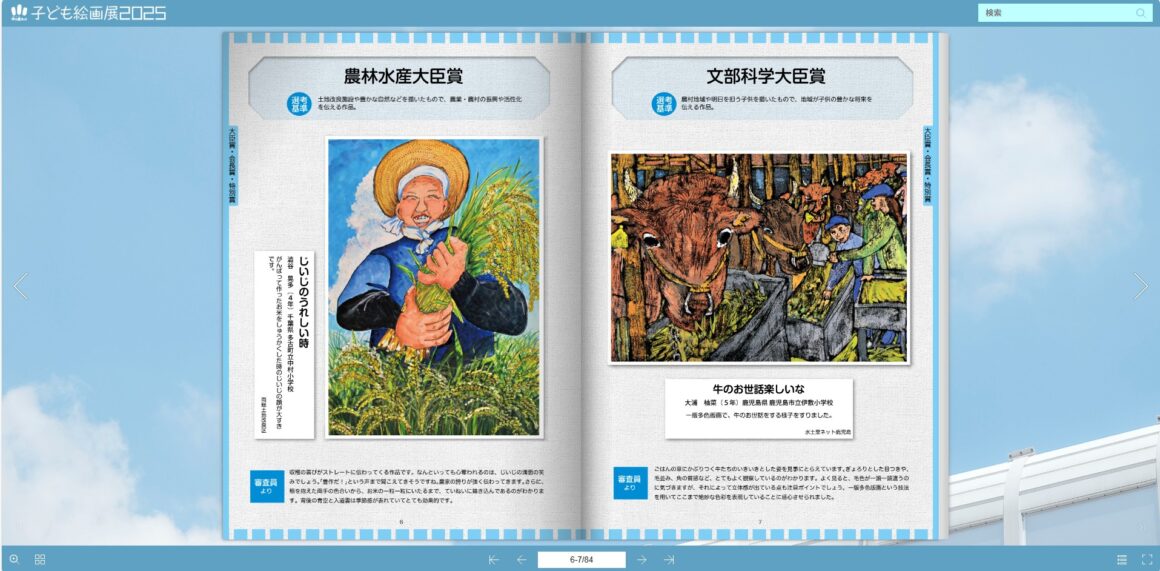 「未来へつなごう!ふるさとの水土里(みどり)子ども絵画展2025」には、今年度も全国からたくさんの作品が寄せられました。